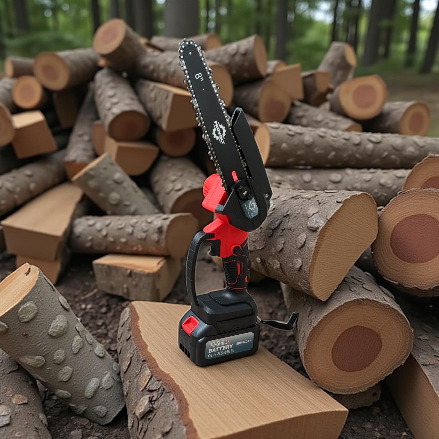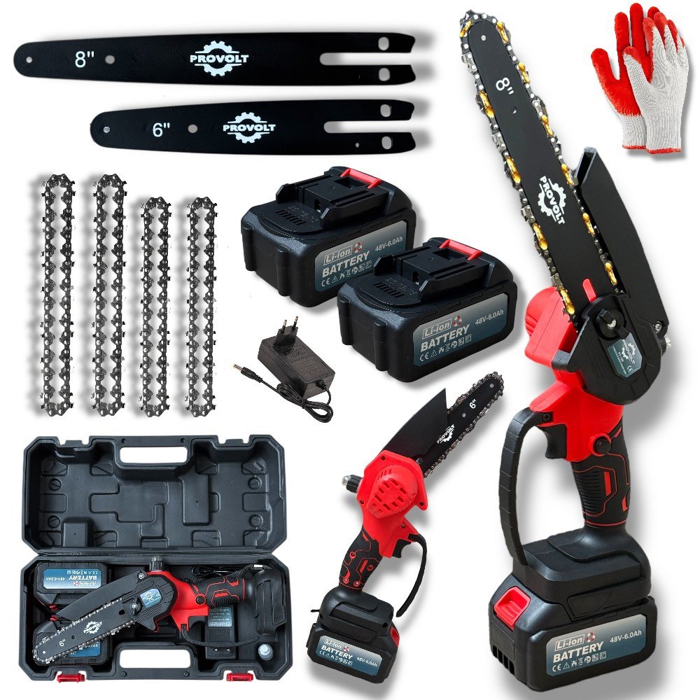 Piła Łańcuchowa Akumulatorowa PROVOLT PV-100 48VF – Bezszczotkowy Silnik, Automatyczne Smarowanie, 2 Akumulatory – Idealna do Cięcia Drewna i Gałęzi