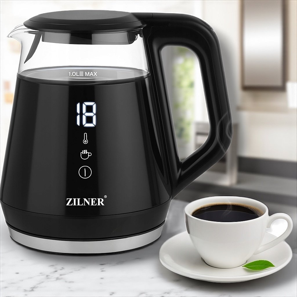 Czajnik elektryczny Zilner 1,1 l, 1100W, z regulacją temperatury 40–100°C, funkcją utrzymywania ciepła i obrotową podstawą 360°.