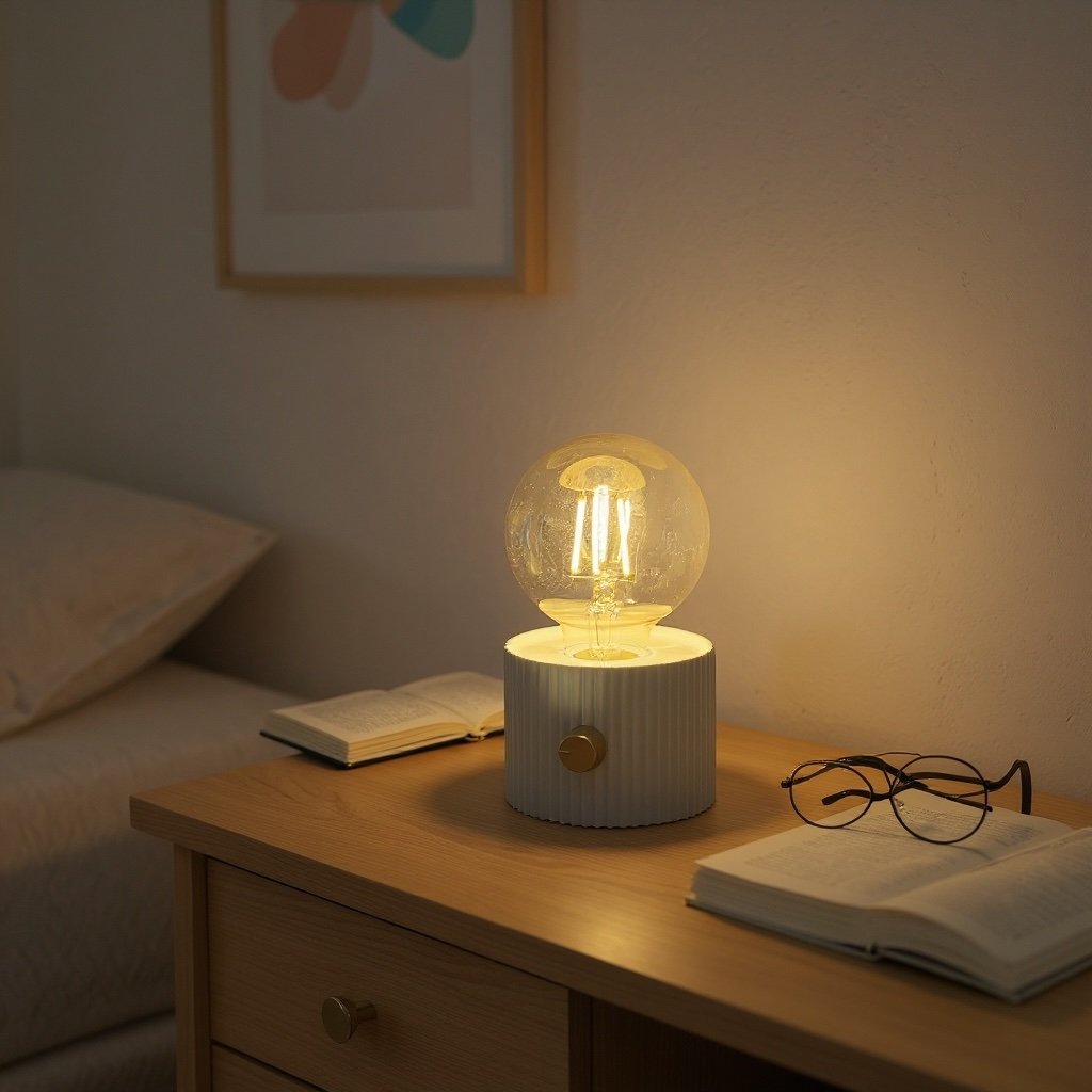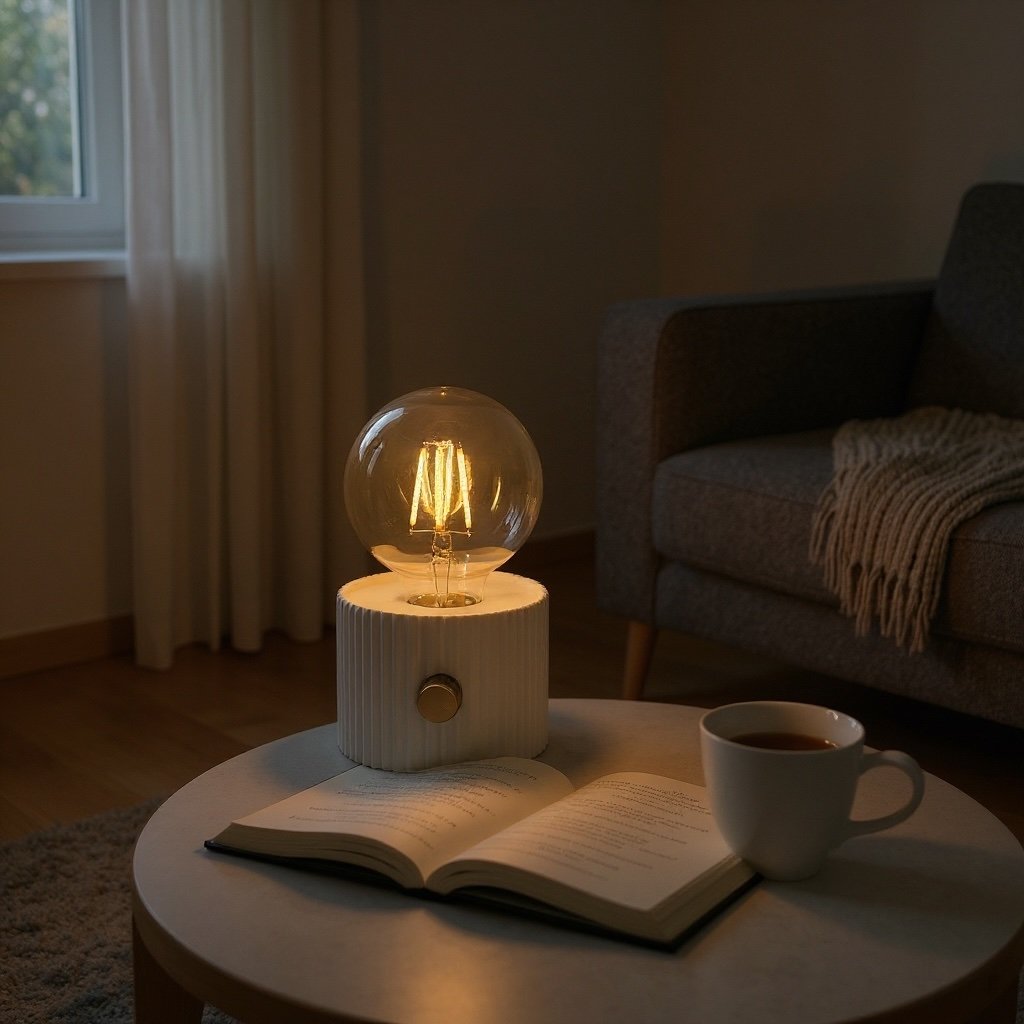 Lampka emituje ciepłe, żółte światło, które tworzy przytulną atmosferę w każdym pomieszczeniu. Dzięki płynnej regulacji jasności dopasujesz natężenie światła do swoich potrzeb – od delikatnego nocnego oświetlenia po mocniejsze światło do czytania lub pracy.