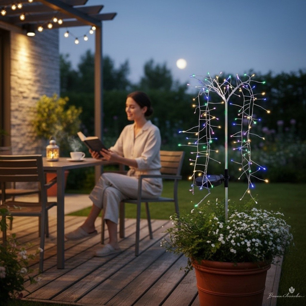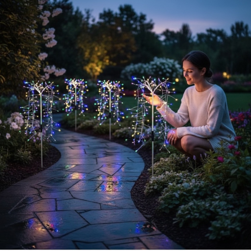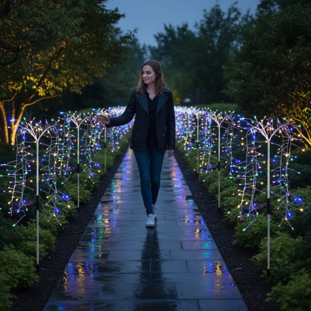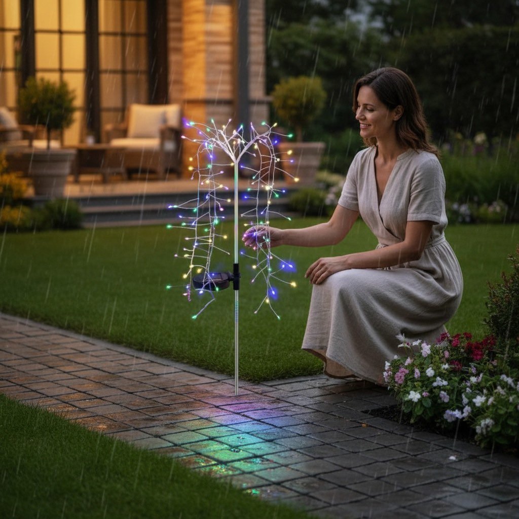 200 diod LED rozmieszczonych na elastycznych ramionach pozwala uzyskać efekt świetlnego wodospadu, który przyciąga uwagę i nadaje ogrodowi niepowtarzalny charakter po zmroku.
