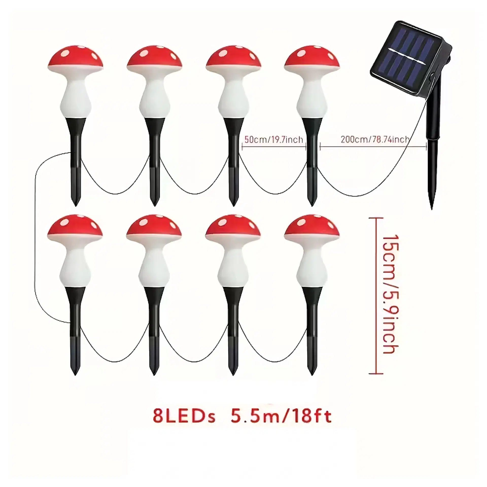 Lampki Solarne Ogrodowe Muchomorki LED – 8 szt. | Dekoracyjne Lampy Solarne do Ogrodu 5,5 m