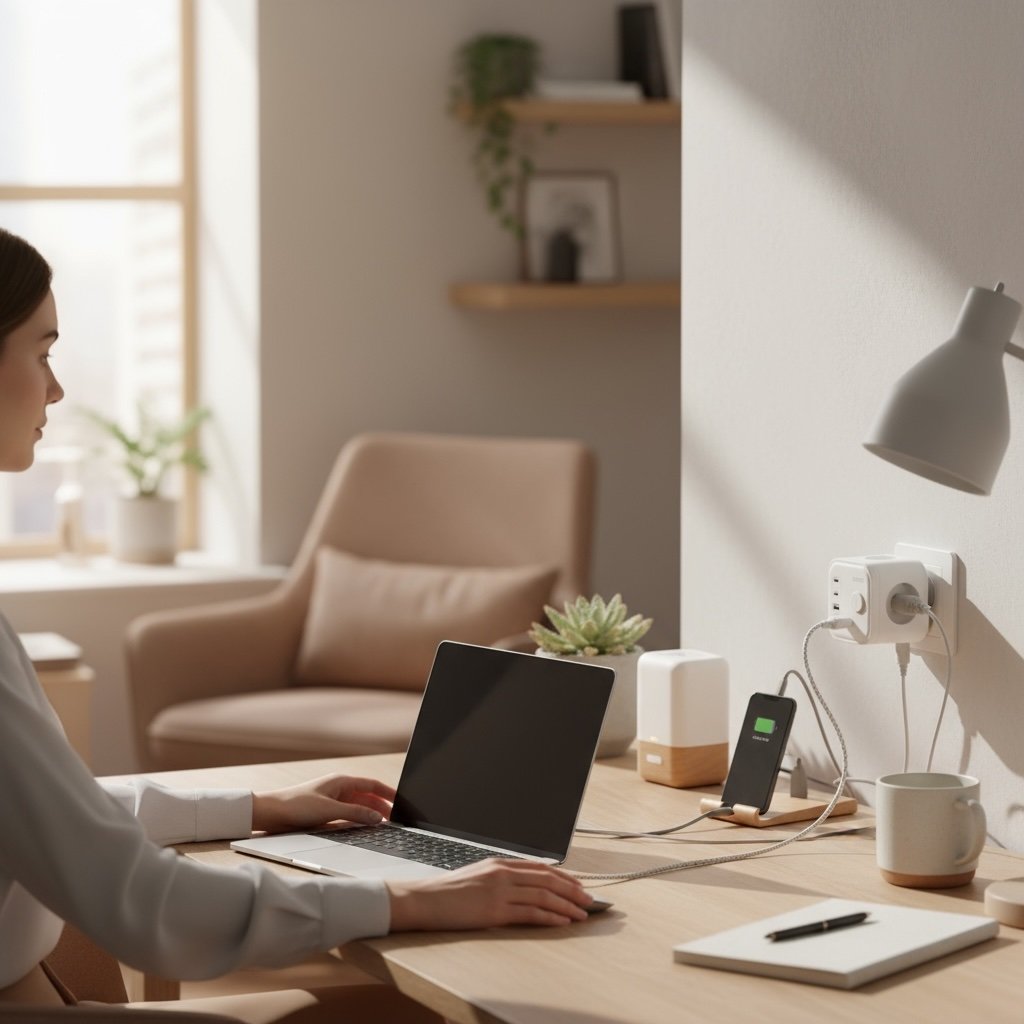 Dzięki temu możesz jednocześnie zasilać laptop, telefon, lampkę biurkową, router, głośnik Bluetooth, smartwatch i wiele innych urządzeń.