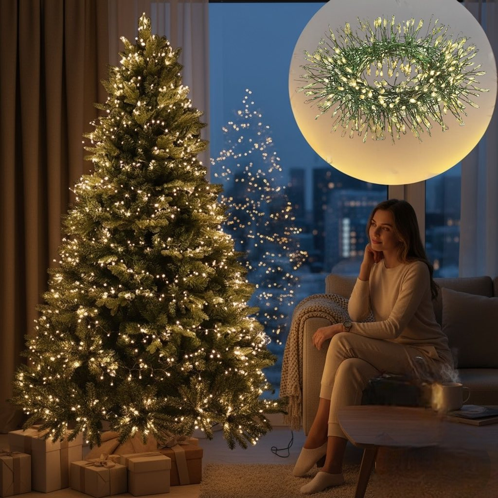 Delikatne mikro LED-y rozmieszczone gęsto na długim przewodzie tworzą efekt gwiezdnego pyłu. Największą zaletą tej girlandy jest zielony kabel, który idealnie wtapia się w gałęzie choinki – przewód jest praktycznie niewidoczny, a uwagę przykuwa jedynie piękne, ciepłe światło.