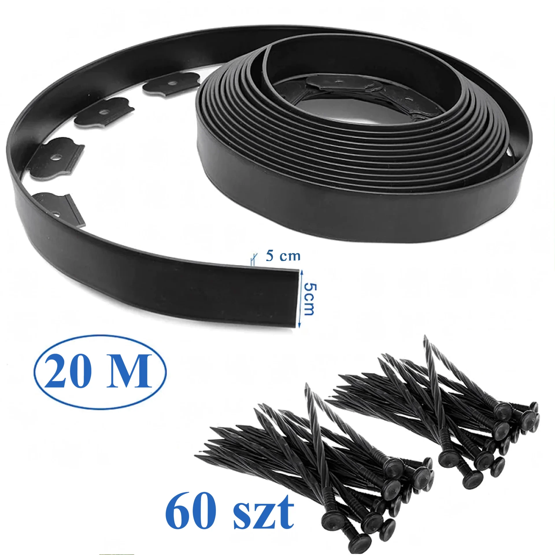 Obrzeże Trawnikowe Ogrodowe 20 m + 60 Kołków – Elastyczna Taśma do Ogrodu