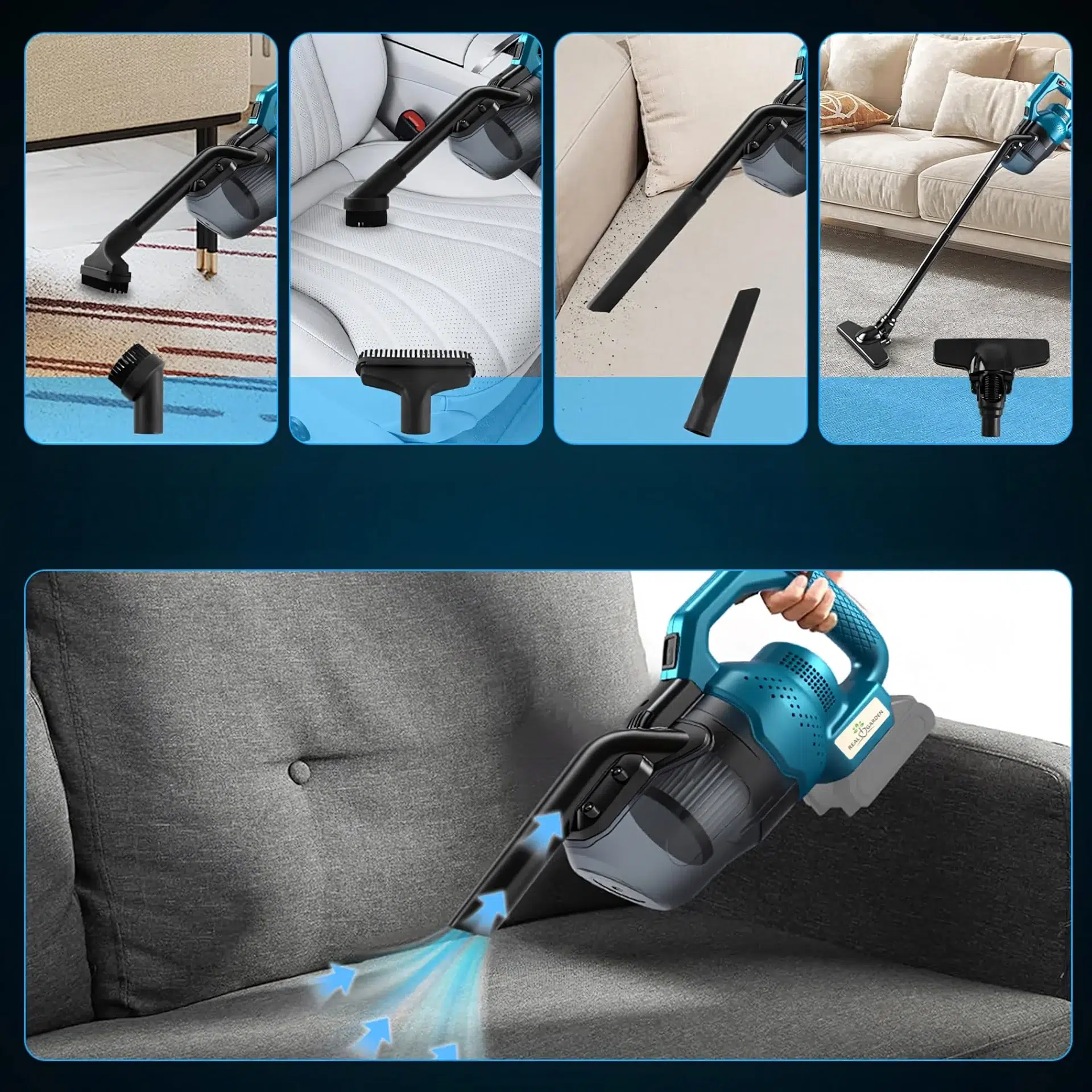 Dzięki różnym końcówkom można dokładnie wyczyścić każdy zakamarek – w domu, garażu lub samochodzie.