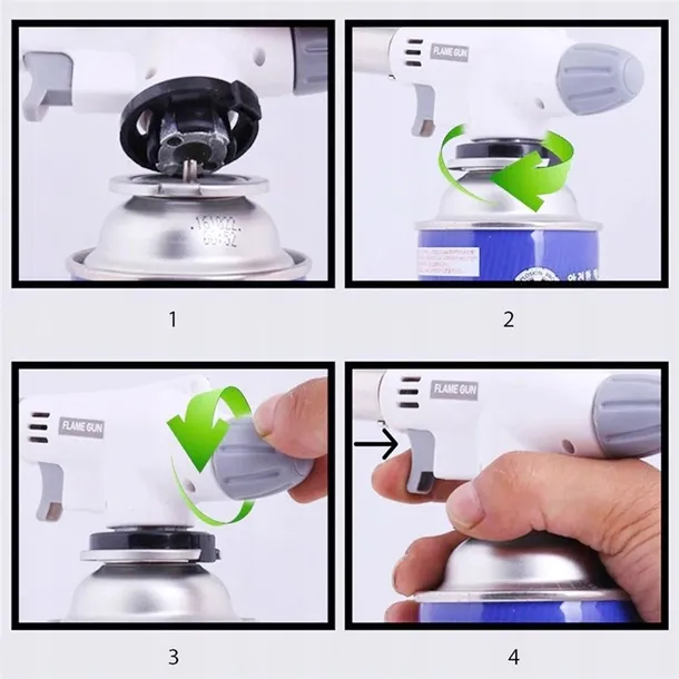 Urządzenie współpracuje z popularnymi kartuszami gazowymi i można je łatwo podłączyć oraz odłączyć. Dzięki opatentowanej konstrukcji możliwe jest bezpieczne użytkowanie w różnych pozycjach – nawet do góry nogami.