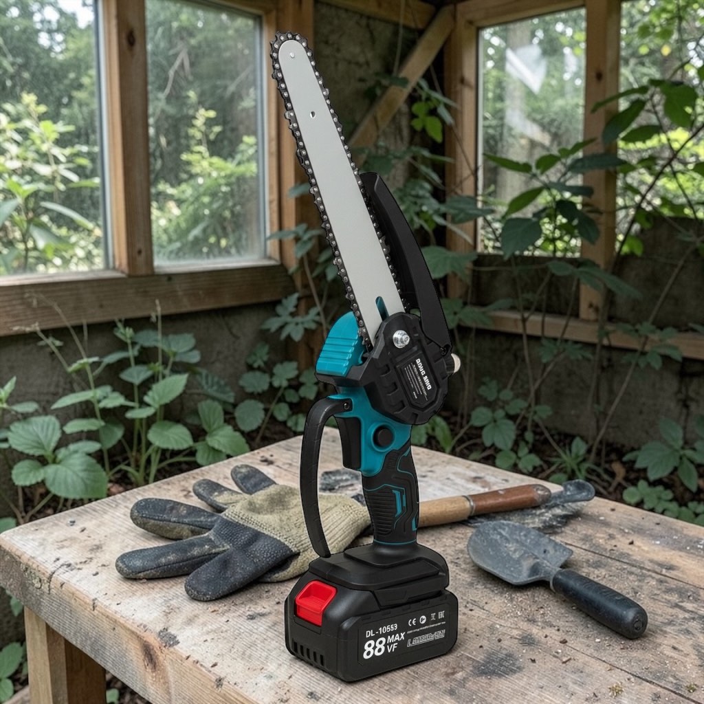Piła łańcuchowa akumulatorowa 8” / 6” (88VF) to praktyczne narzędzie do szybkich prac wokół domu, w ogrodzie i na działce. Dzięki zasilaniu akumulatorowemu pracujesz wygodnie bez kabla – idealnie do przycinania gałęzi, krzewów oraz przygotowania drobniejszego drewna.