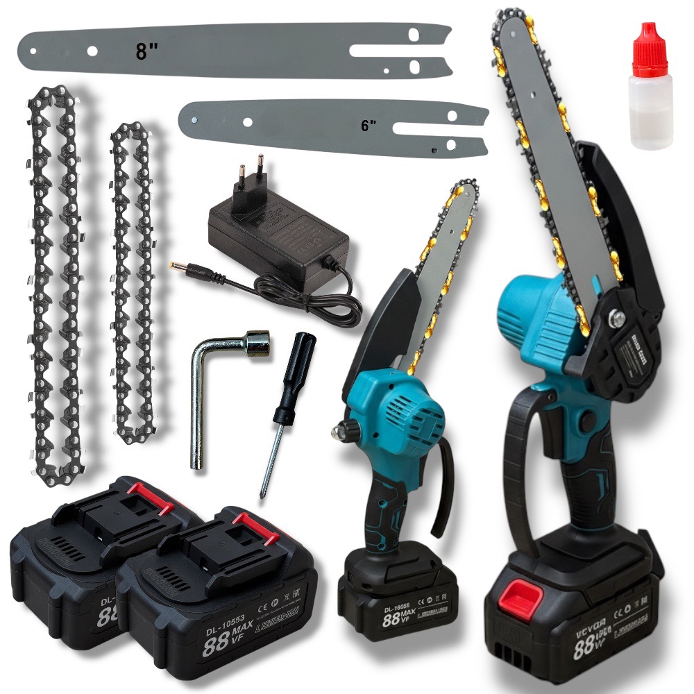Piła łańcuchowa akumulatorowa 8” / 6” (88VF) – zestaw z 2 prowadnicami i 2 akumulatorami
