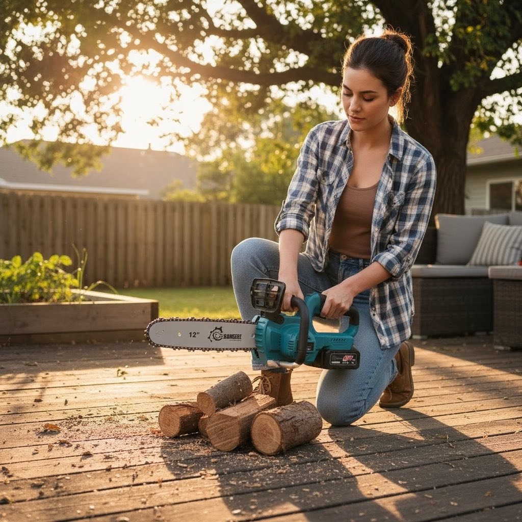 Pilarka łańcuchowa akumulatorowa RANGERZ 12″ (48VF) to wygodne i mobilne narzędzie przeznaczone do prac wokół domu, ogrodu oraz na działce. Dzięki wydajnemu silnikowi bezszczotkowemu urządzenie zapewnia płynną pracę, wysoką skuteczność cięcia oraz dłuższą żywotność niż standardowe modele szczotkowe.