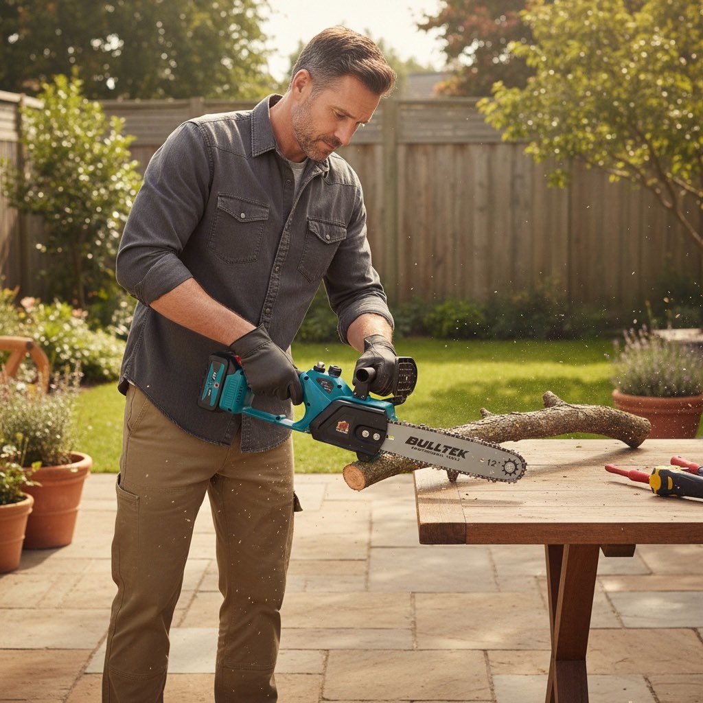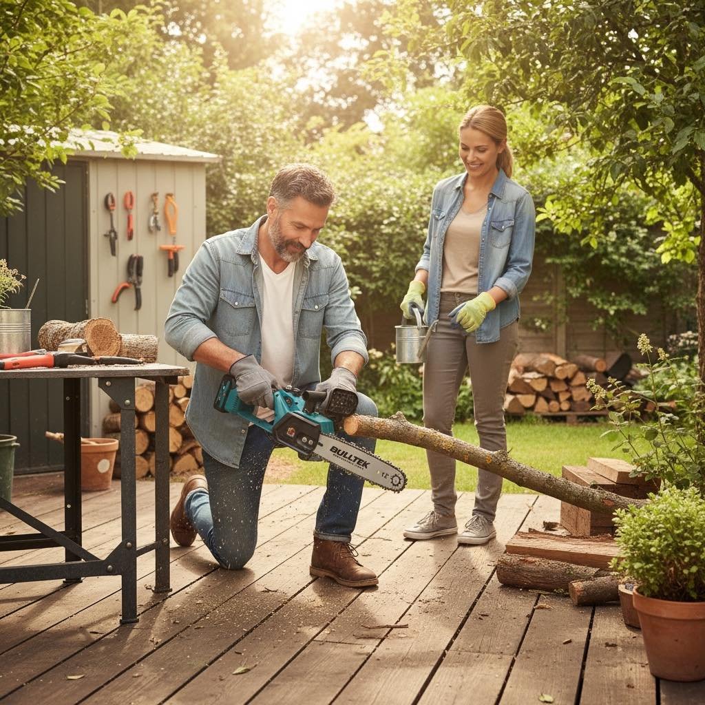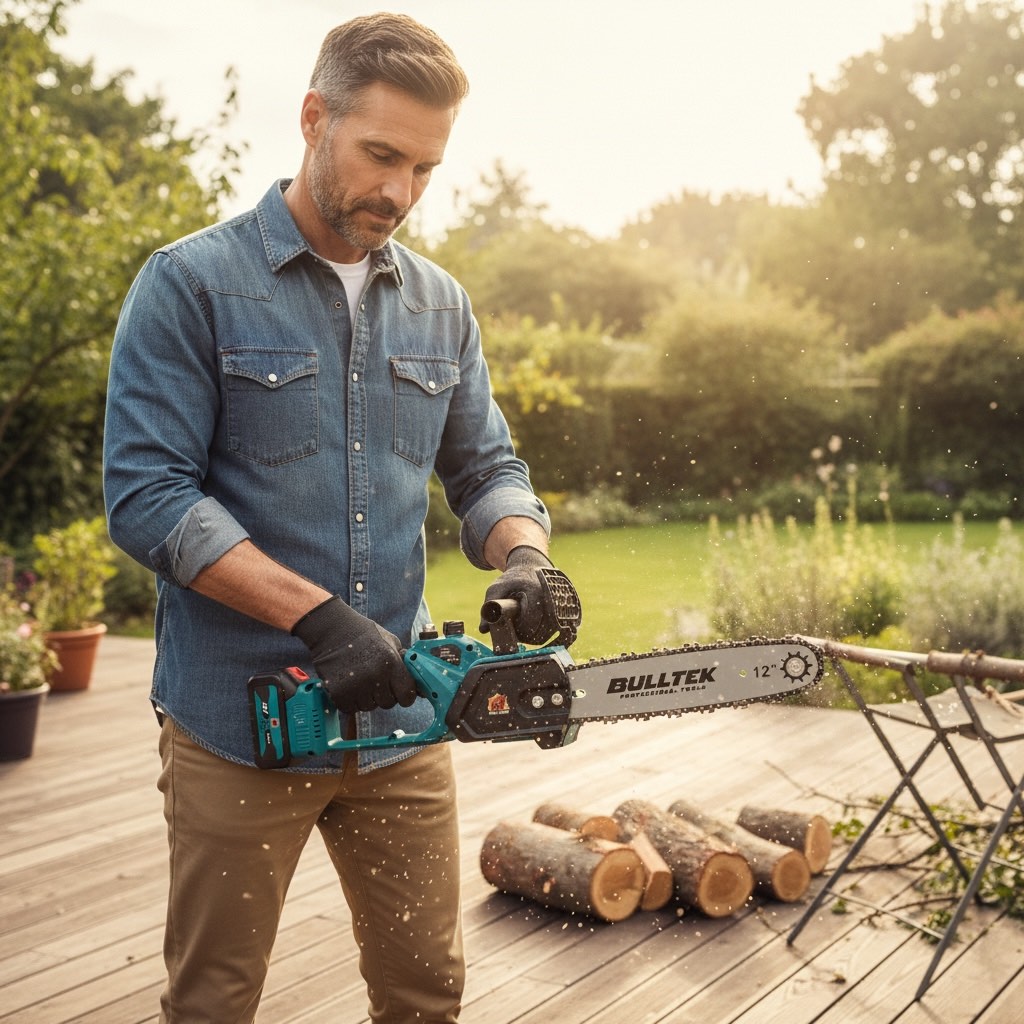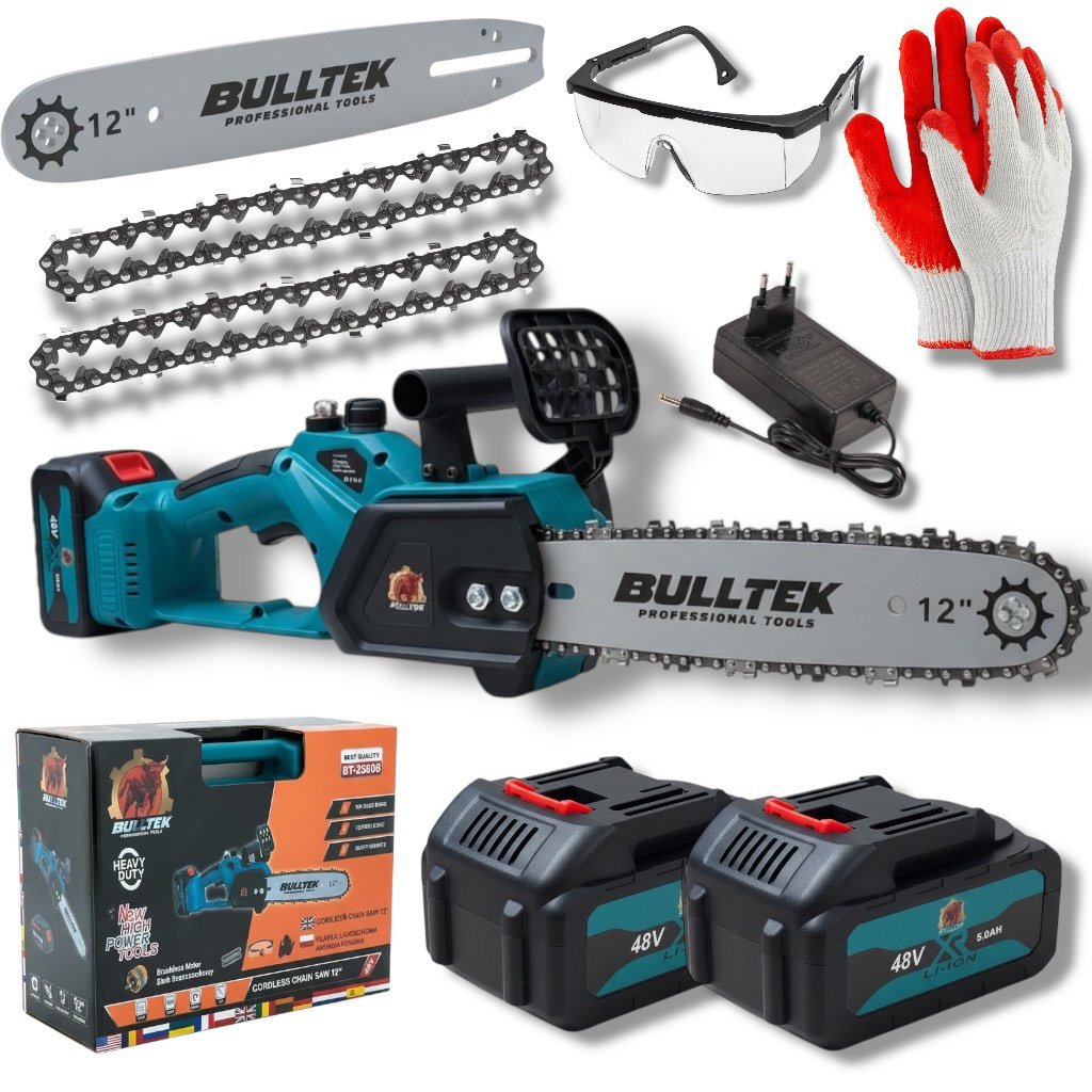 Pilarka łańcuchowa akumulatorowa BULLTEK 12” (48VF) to wygodne i mobilne narzędzie do prac wokół domu, ogrodu i działki. Wyposażona w silnik bezszczotkowy (Brushless) zapewnia sprawną pracę i dobrą kulturę działania. Dzięki zasilaniu akumulatorowemu pracujesz bez kabla, a w zestawie otrzymujesz 2 akumulatory, co pozwala wydłużyć czas pracy i szybko kontynuować cięcie.