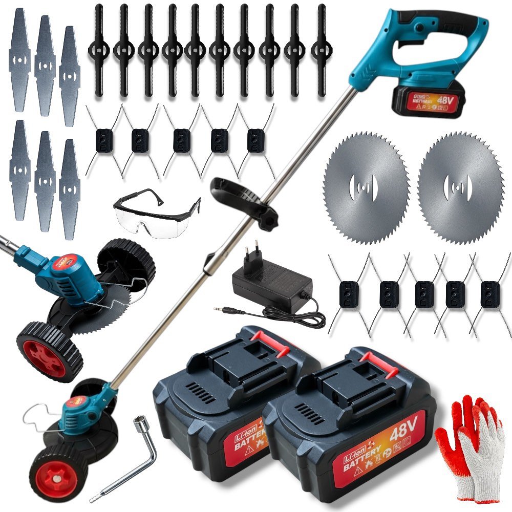 Kompletny zestaw: Podkaszarka z akumulatorem i ładowarką, idealna dla wymagających użytkowników.