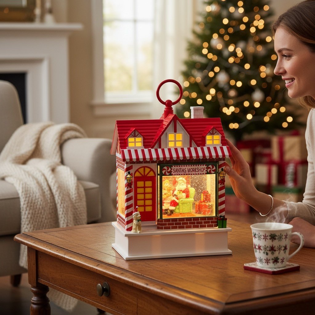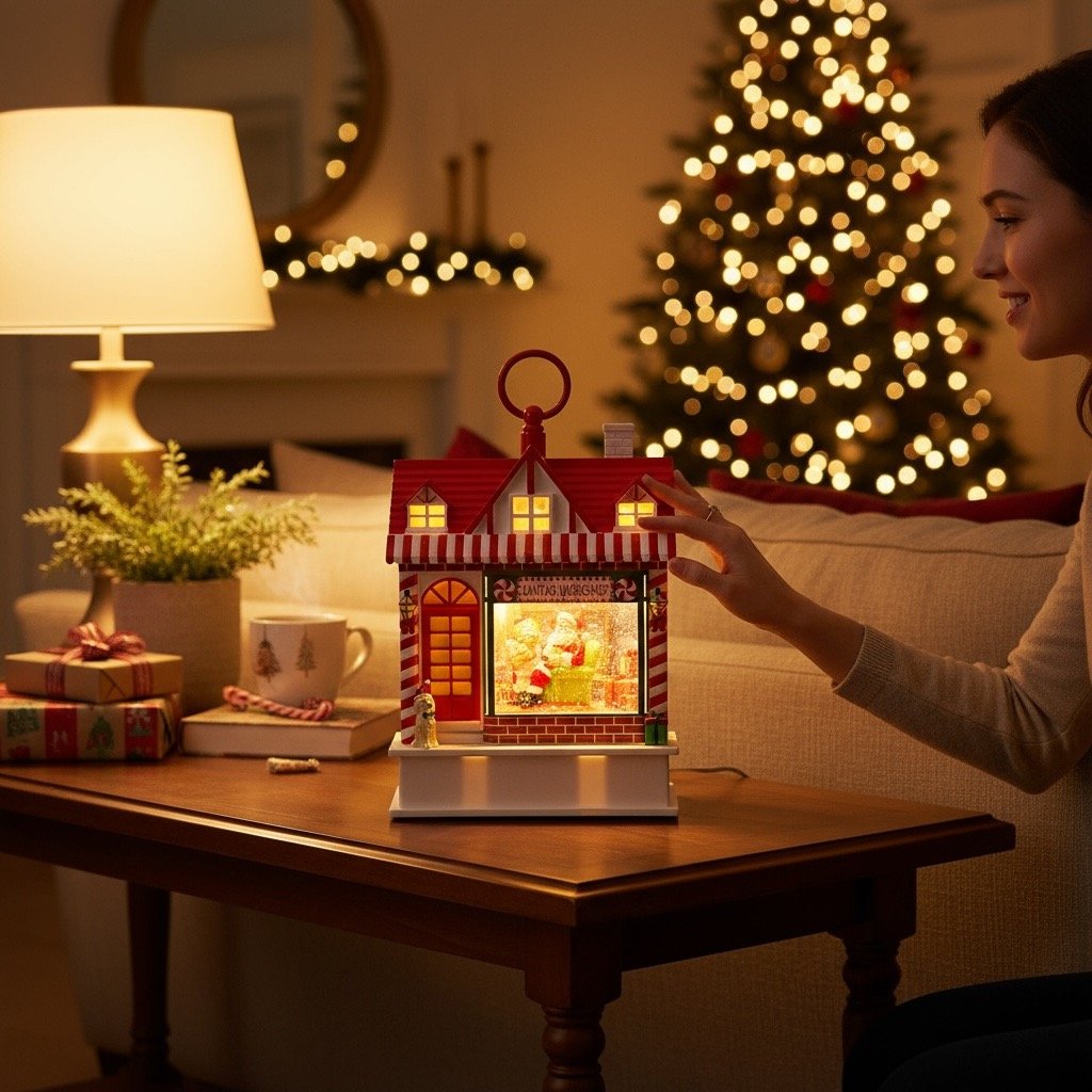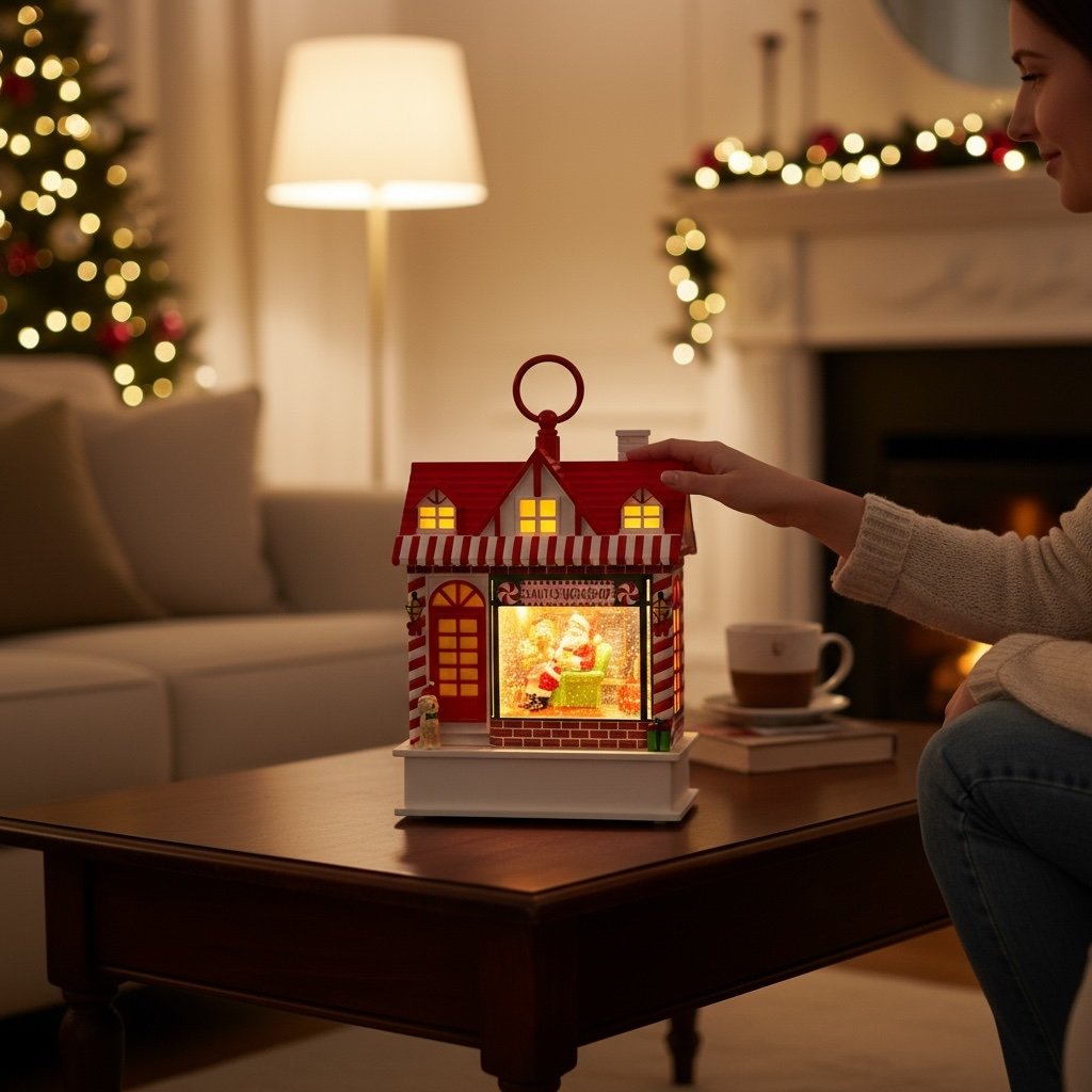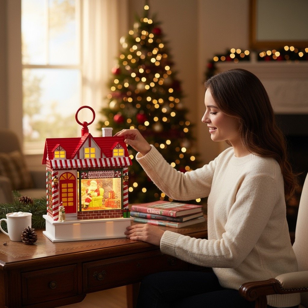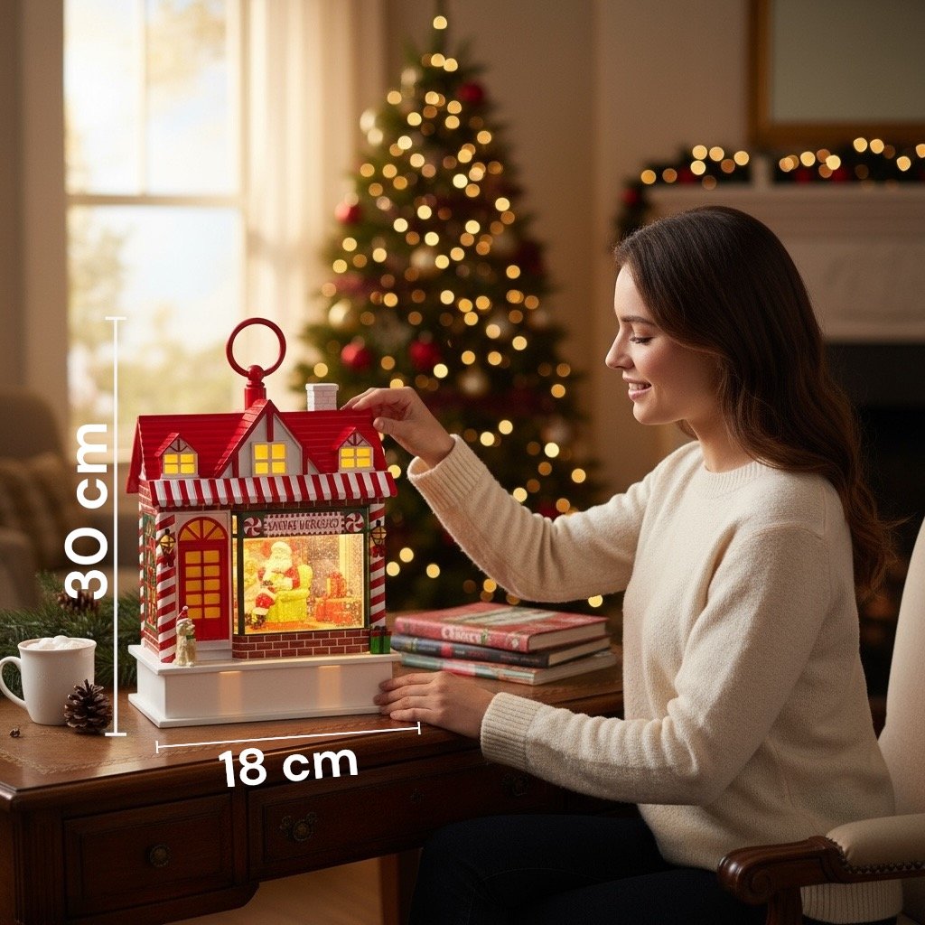 Świąteczny Domek LED z Mikołajem | Latarnia Bożonarodzeniowa ze Śniegiem i Muzyką