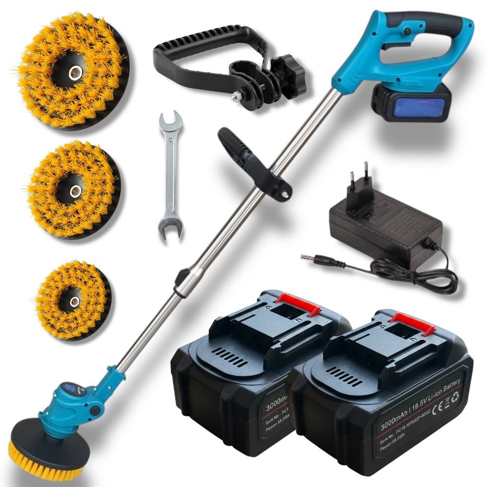 Szczotka do czyszczenia akumulatorowa do kostki brukowej, fug i tarasu + 3 szczotki + 2 akumulatory + ładowarka