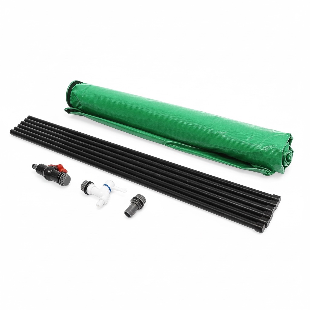 Dzięki lekkiej i składanej konstrukcji zbiornik jest łatwy w montażu, przechowywaniu i transporcie. Po zakończeniu sezonu można go szybko złożyć i schować, co oszczędza miejsce.