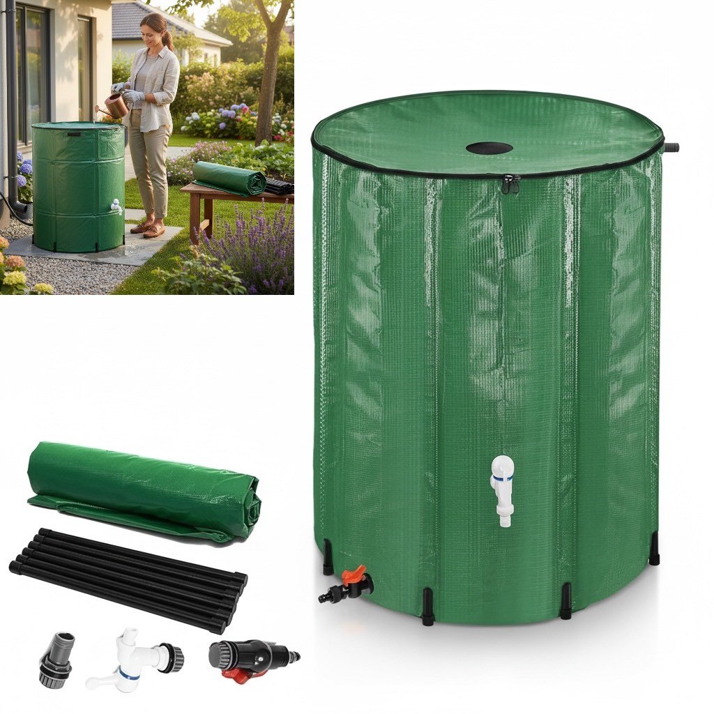 Składany zbiornik na deszczówkę o pojemności 100 litrów to praktyczne i ekologiczne rozwiązanie do gromadzenia wody opadowej w ogrodzie, na działce lub przy domu. Pozwala na efektywne wykorzystanie deszczówki do podlewania roślin, mycia narzędzi czy innych prac ogrodowych.