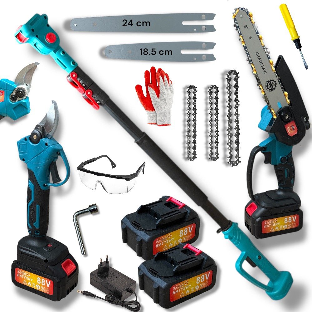Zestaw akumulatorowy 3w1 Piła łańcuchowa + Sekator + Wysięgnik teleskopowy 2m 88VF z 2 akumulatorami