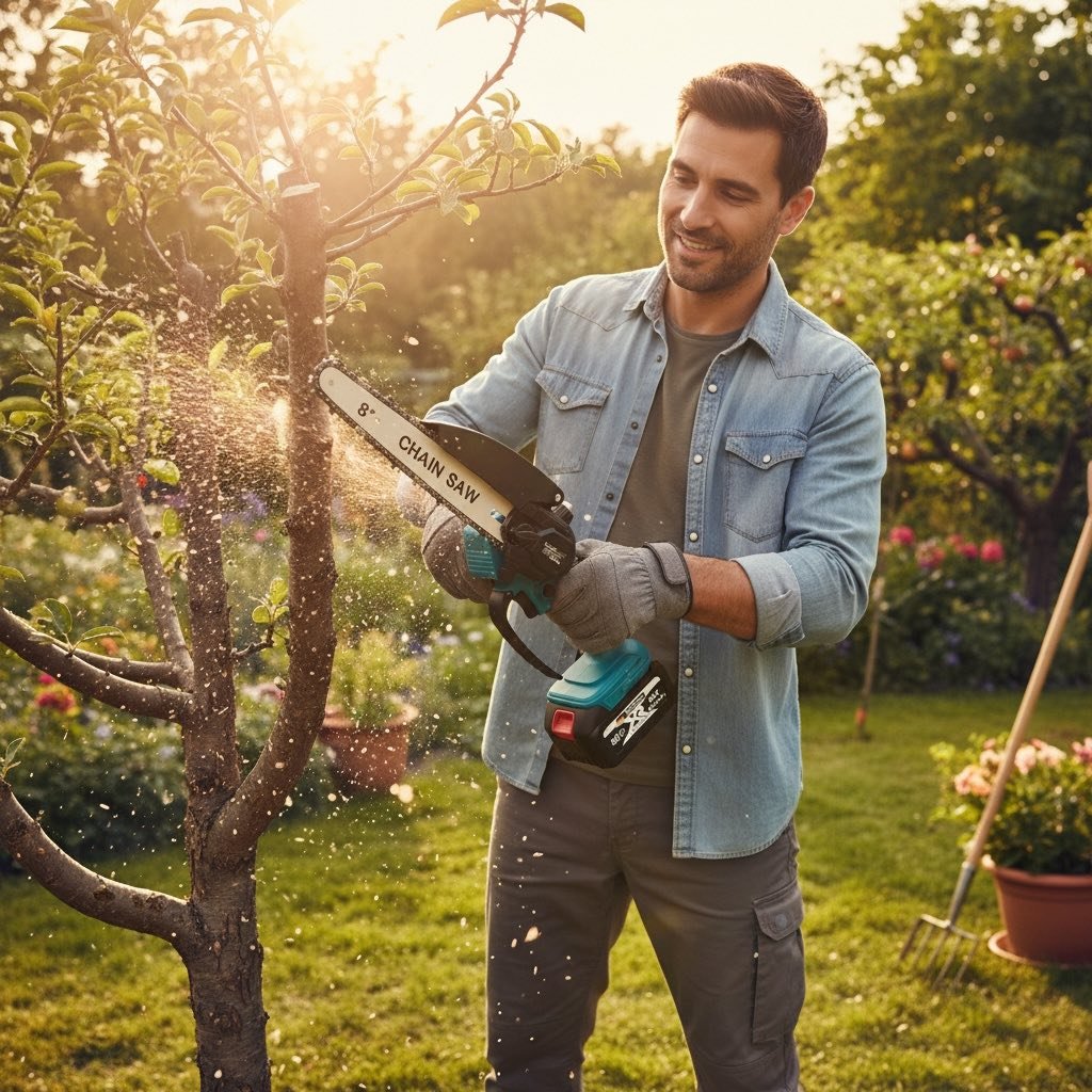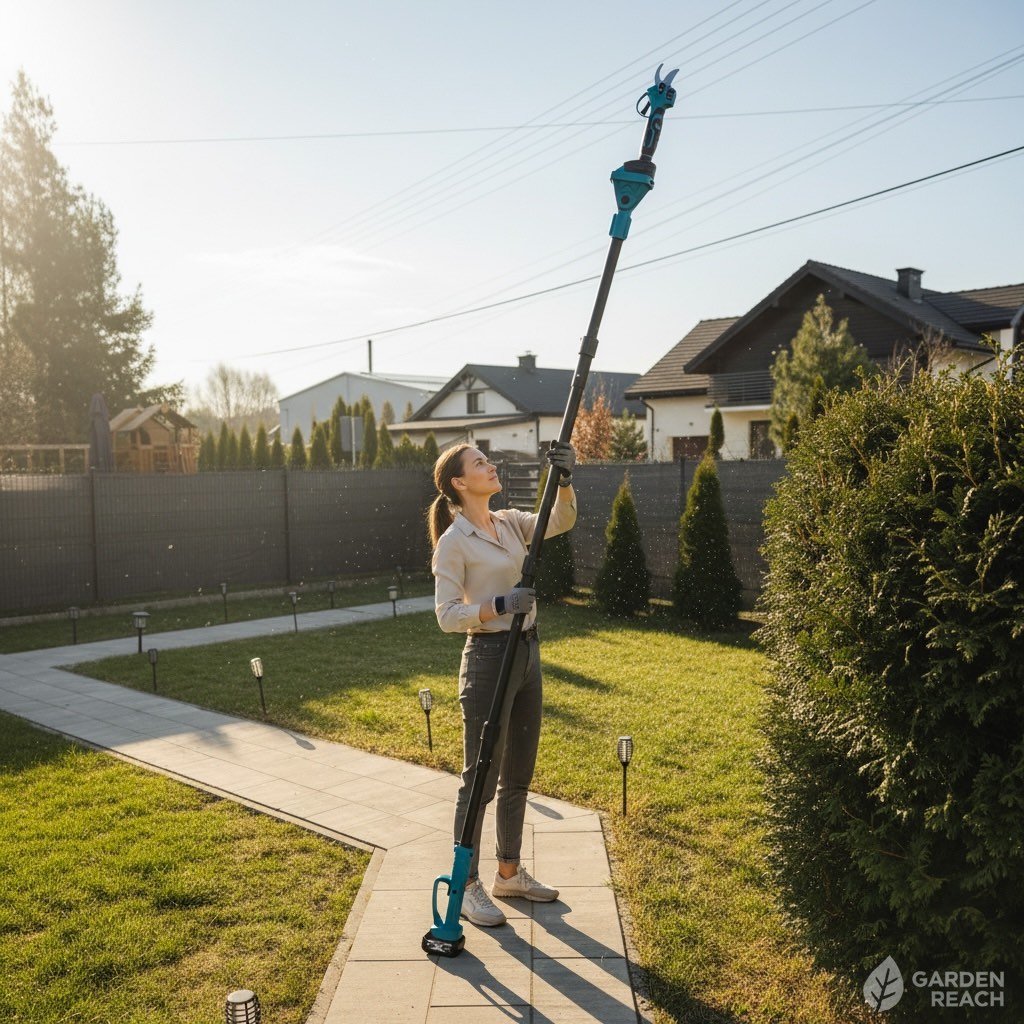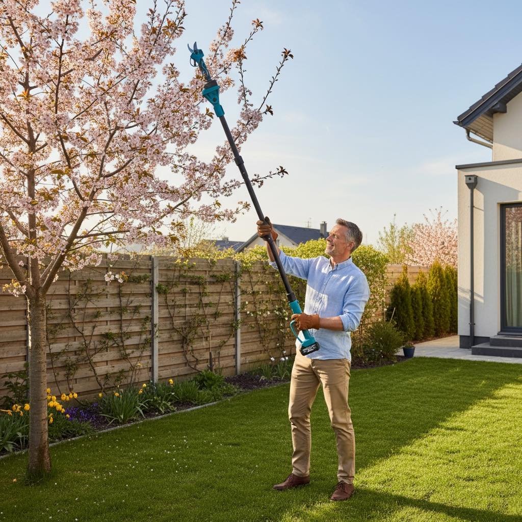 Profesjonalny zestaw ogrodowy akumulatorowy 3w1 to praktyczne rozwiązanie dla osób, które chcą wygodnie i bezpiecznie przycinać gałęzie zarówno na wysokości, jak i przy ziemi. W jednym komplecie otrzymujesz piłę łańcuchową, sekator akumulatorowy oraz wysięgnik teleskopowy 2 m, dzięki czemu możesz pracować bez używania drabiny.