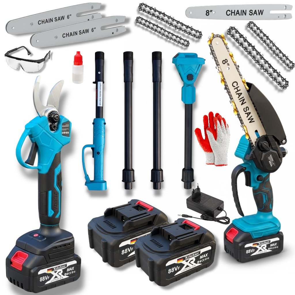 Zestaw akumulatorowy 3w1 Piła łańcuchowa + Sekator + Wysięgnik teleskopowy 2 m 88VF 2x Akumulator