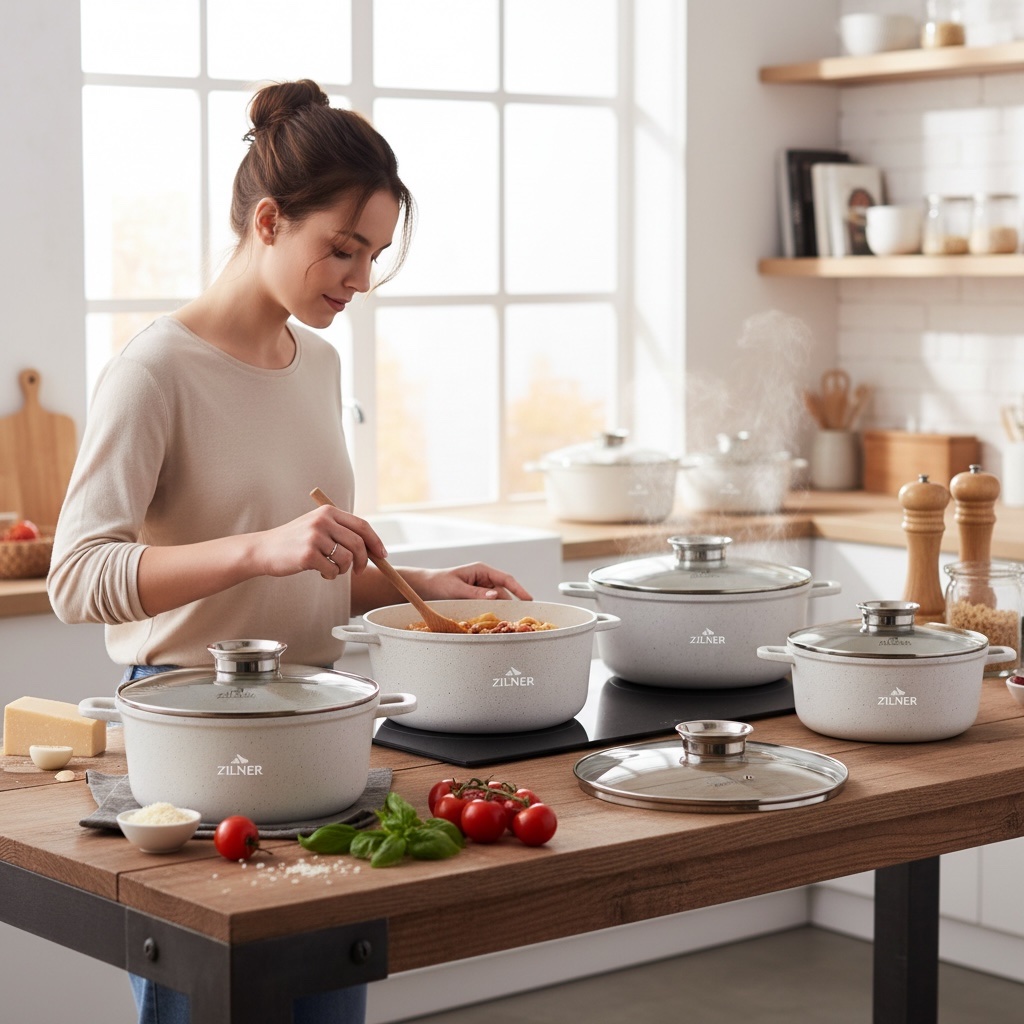 Zestaw garnków ZILNER ZL-8573 to solidny komplet do kuchni domowej, mieszkania lub gastronomii. Różne rozmiary garnków zapewniają wygodę gotowania każdego dnia.