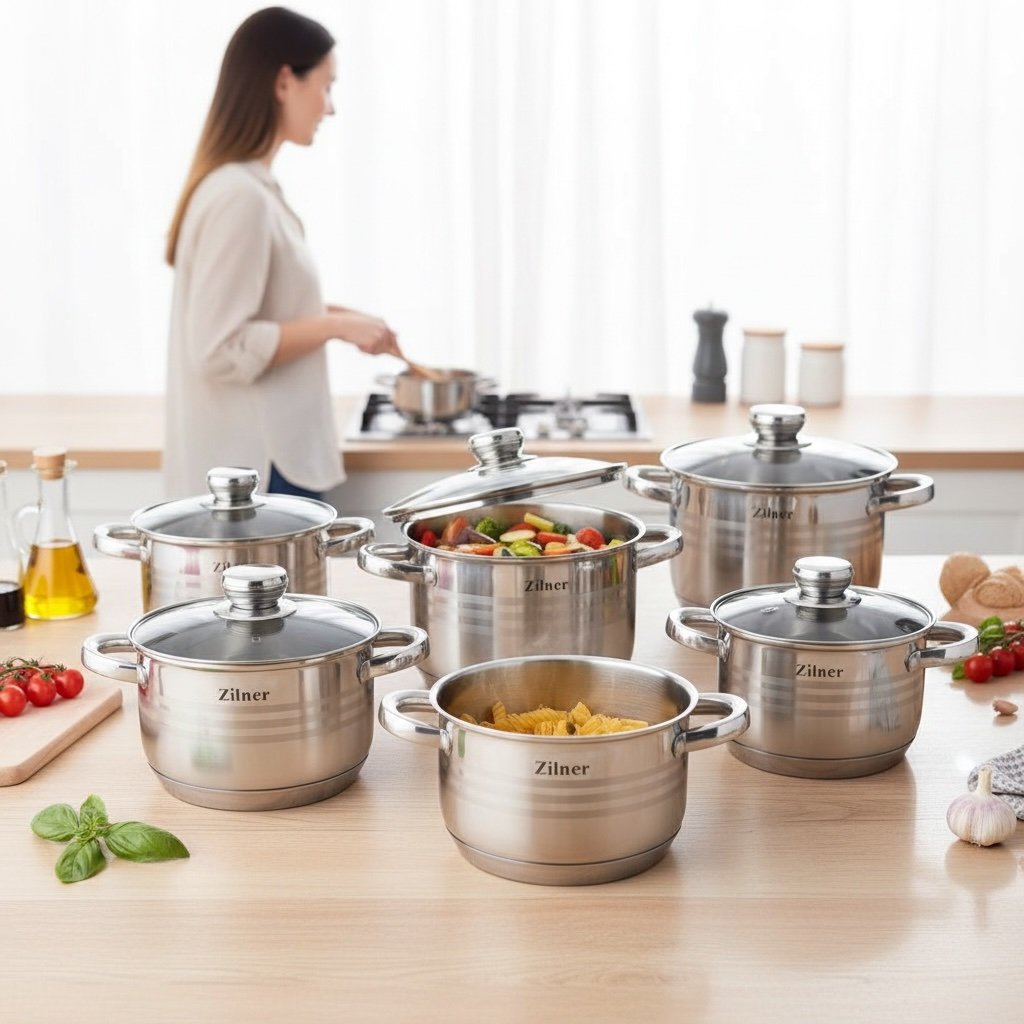 Wybierz garnki, które łączą funkcjonalność, elegancję i trwałość. Zestaw ZILNER 12 elementów to inwestycja na lata – gotuj szybciej, zdrowiej i z przyjemnością.