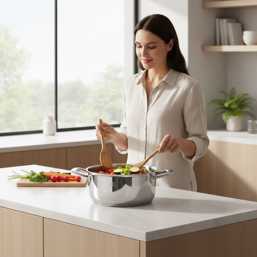 Stal nierdzewna jest wyjątkowo łatwa w czyszczeniu. Garnki i patelnię można myć ręcznie lub w zmywarce, bez ryzyka uszkodzenia powierzchni. Naczynia są odporne na wysokie temperatury oraz detergenty, co sprawia, że ich codzienna pielęgnacja nie wymaga wysiłku.