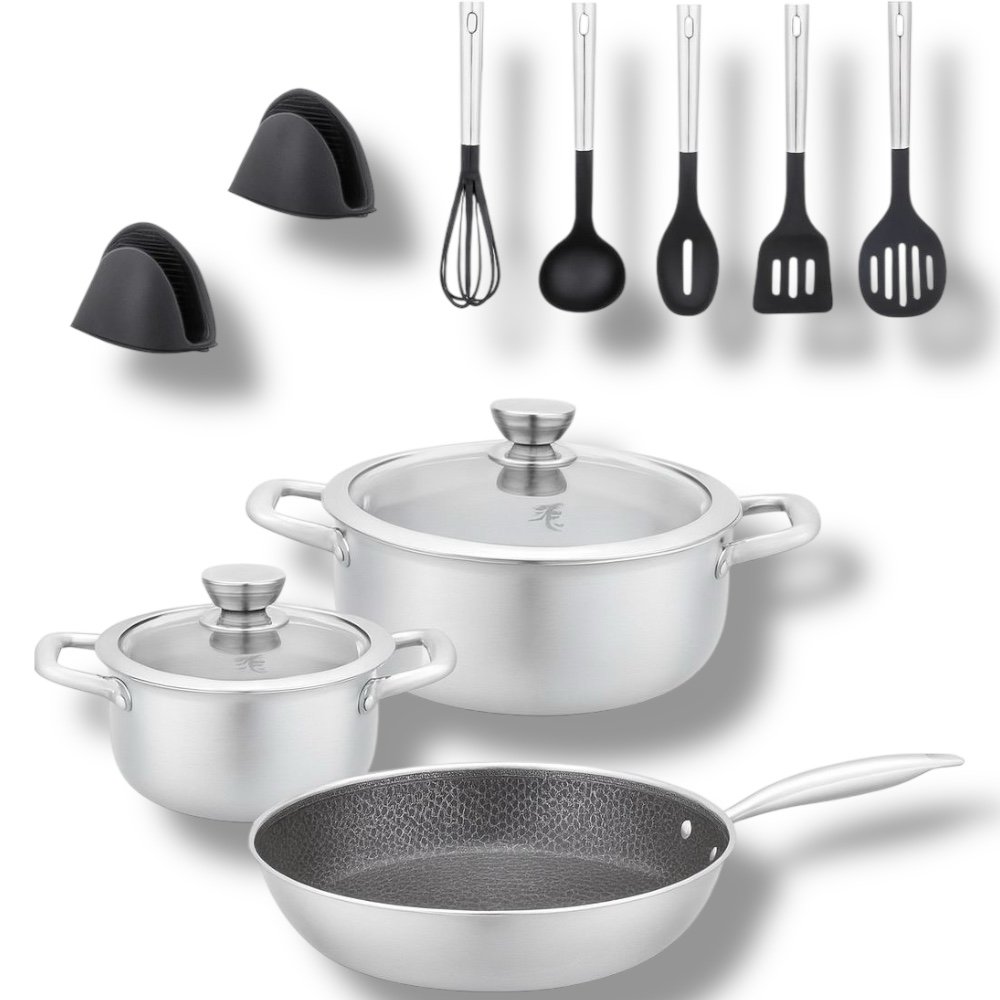 Zestaw ZWILLENTOFF ZT-34331 to nie tylko garnki i patelnia, ale również praktyczne przybory kuchenne. W komplecie znajduje się 5 sztuk akcesoriów (m.in. łyżka, łopatka, trzepaczka), które ułatwiają przygotowywanie potraw i pozwalają w pełni wykorzystać możliwości oferowanych naczyń.