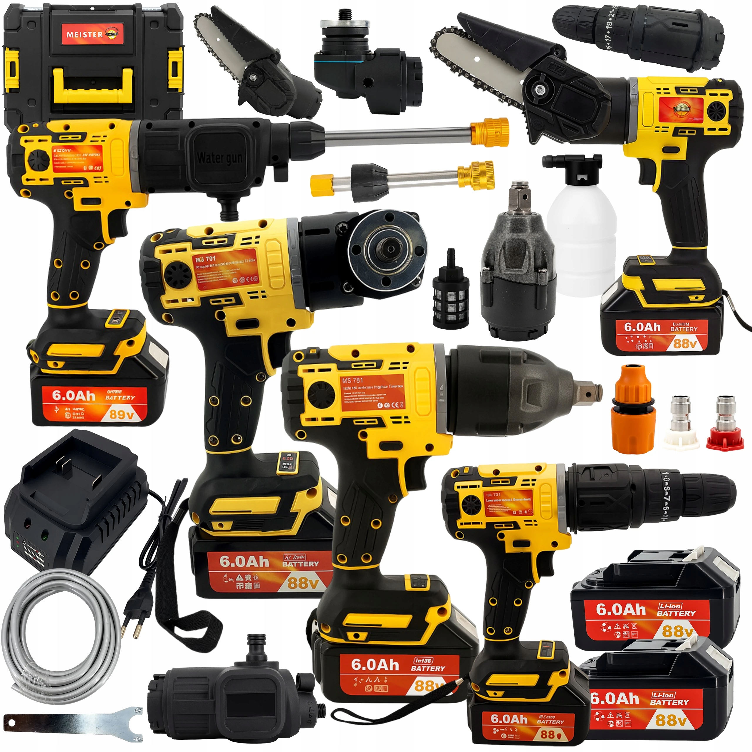 Zestaw Narzędzi Akumulatorowych MEISTER 5w1 88V Wiertarka Piła Myjka Klucz Zestaw Narzędzi Akumulatorowych MEISTER 5w1 88V Wiertarka Piła Myjka Klucz