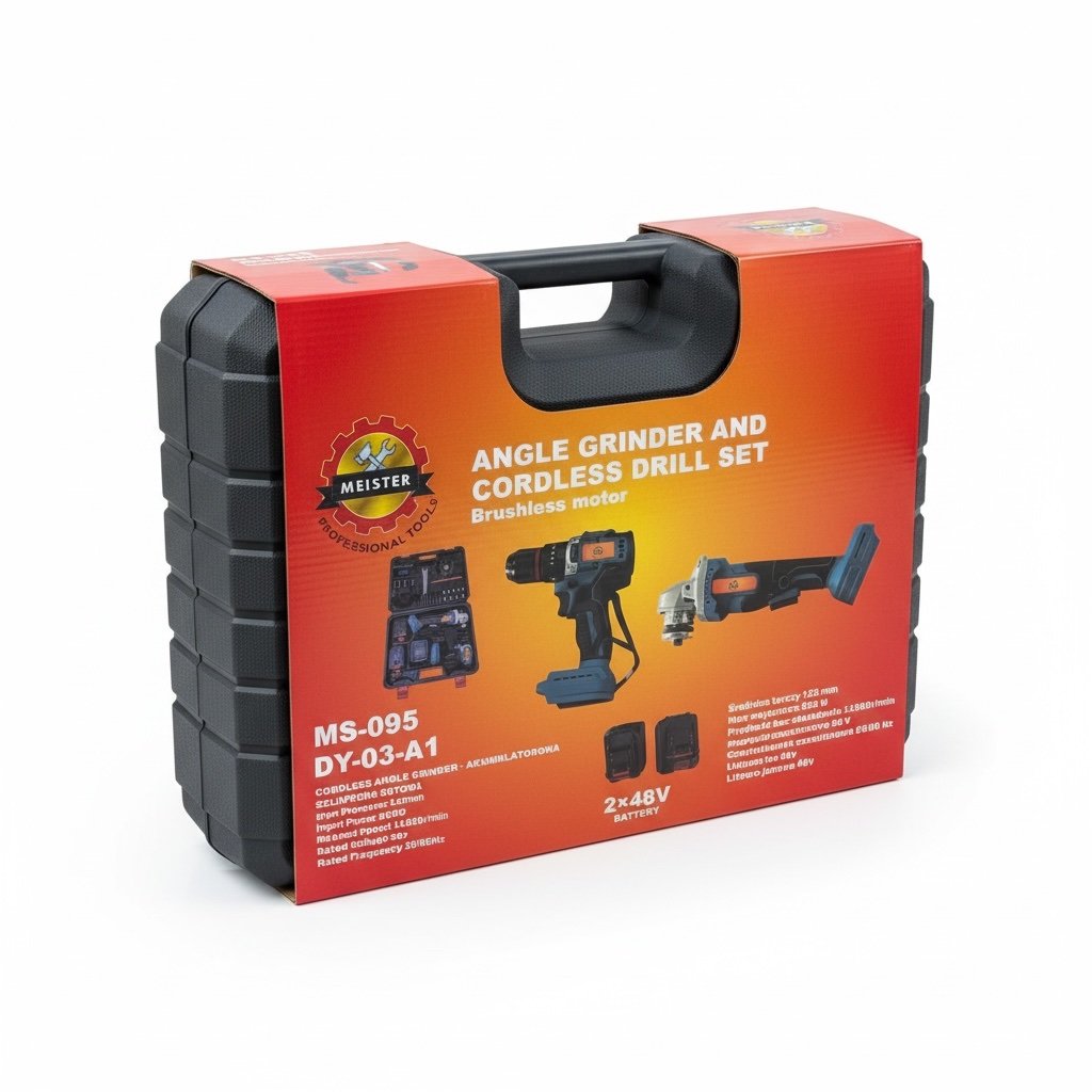 Profesjonalny zestaw narzędzi akumulatorowych MEISTER MS-095 DY-03-A1 48VF to praktyczne i wydajne rozwiązanie dla majsterkowiczów, instalatorów oraz ekip remontowych. W komplecie znajduje się szlifierka kątowa 125 mm 48VF, wiertarko-wkrętarka 48VF, 2 akumulatory 48VF, ładowarka, zestaw wierteł i bitów oraz solidna walizka transportowa.